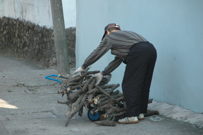 화목을 준비하는 마을 주민