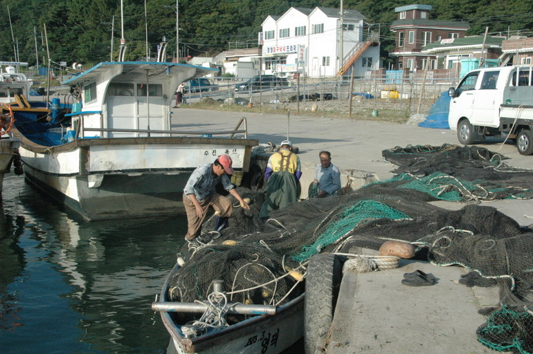 그물에서 '청어'를 분리하는 작업(4), 축산항