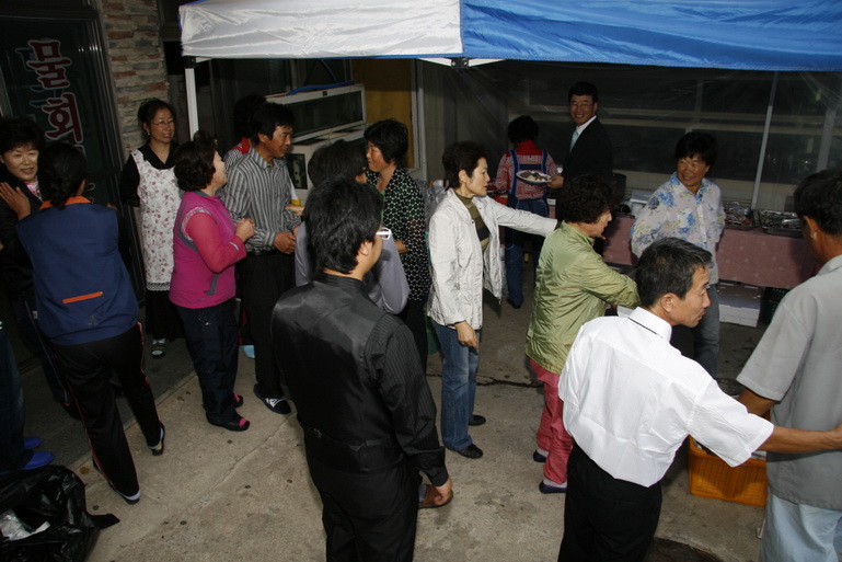 박현태의 결혼을 축하하기 위해 찾아온 마을주민들