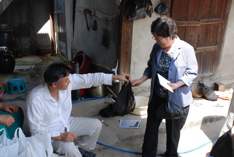 남은 제물을 챙겨주는 모습