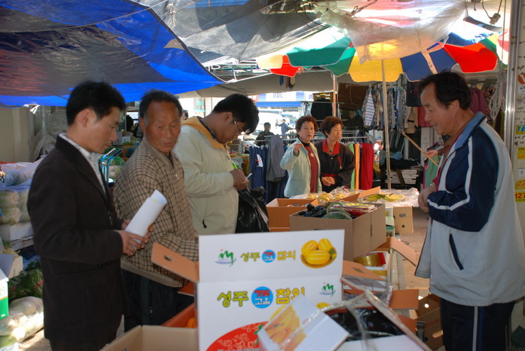 홍위근 어르신이 제사에 쓸 과일을 구입하는 모습