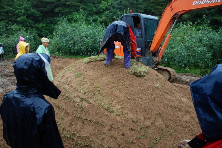 봉분에 때 입히는 모습