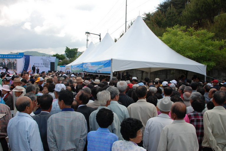 부계-동명간 터널 공사 기공식 참석 기념품을 받으려고 기다리는 사람들