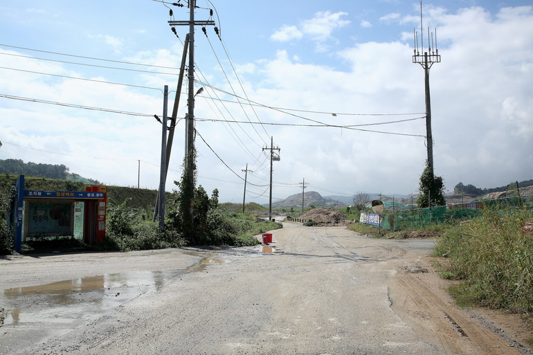 고정1리 버스정류장과 공사현장