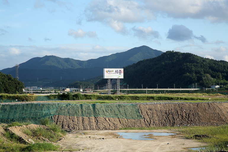 공사현장과 세종시를 알리는 대형간판