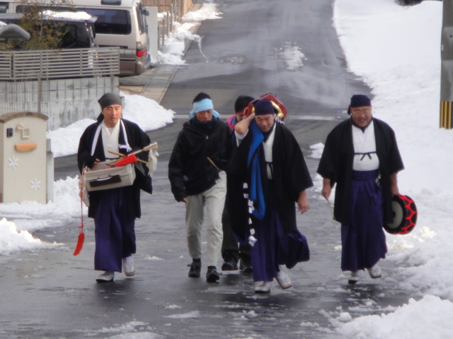 마을 내에서 이동하는 사자춤패
