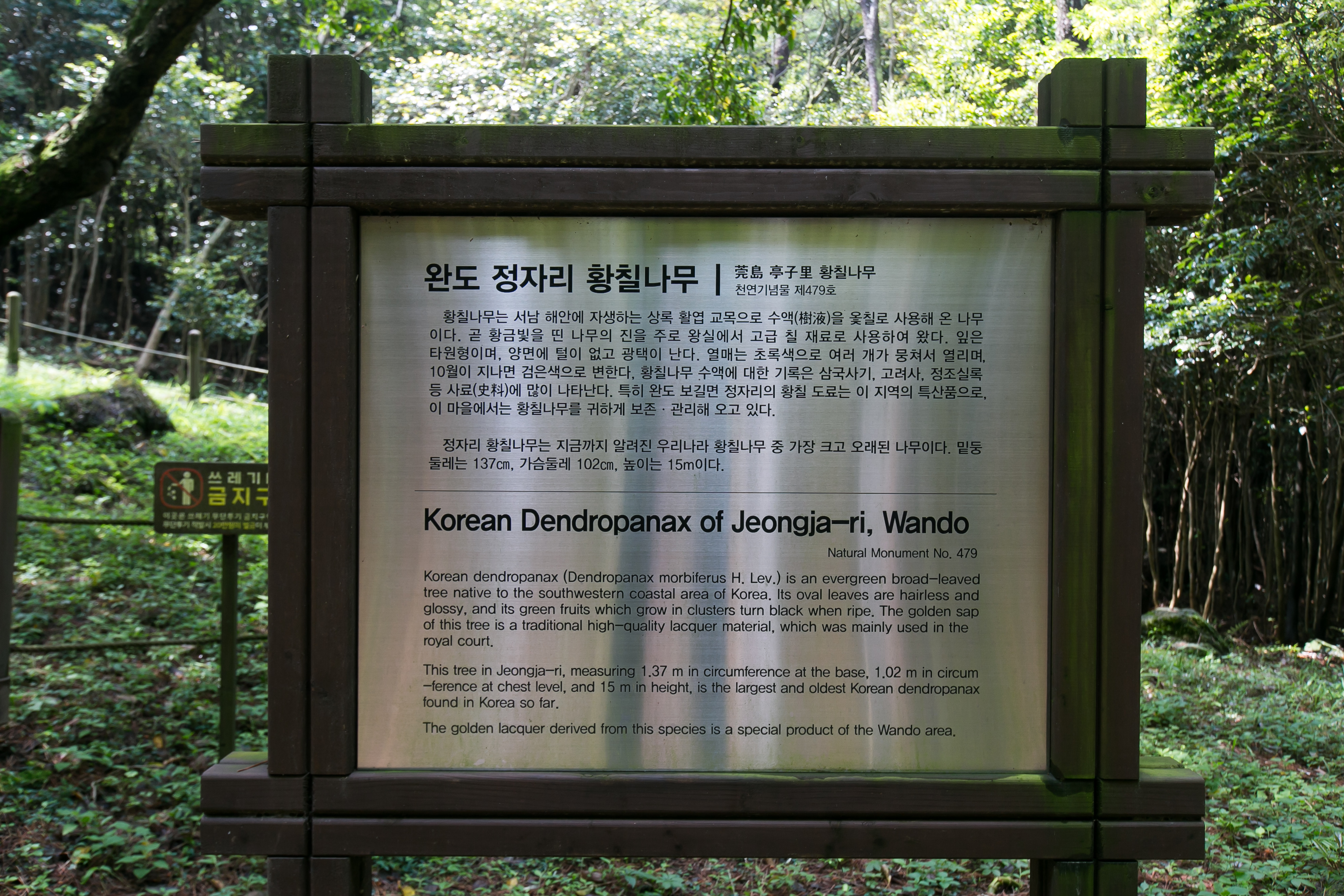 완도군 보길면 정자리 황칠나무 천연기념물 제479호 표지판