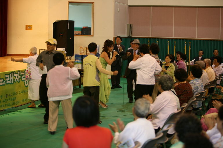 경로잔치와 노래자랑대회_무대 아래까지 내려와 노래하는 초청가수 1