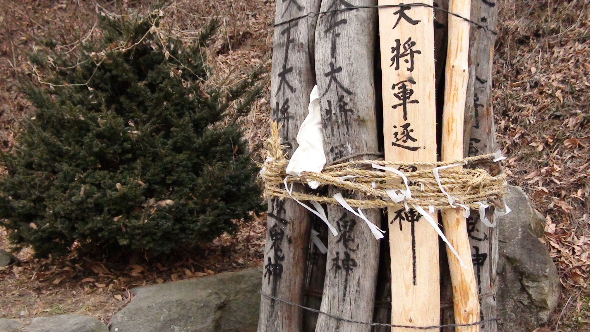 장승에 금줄 두르기