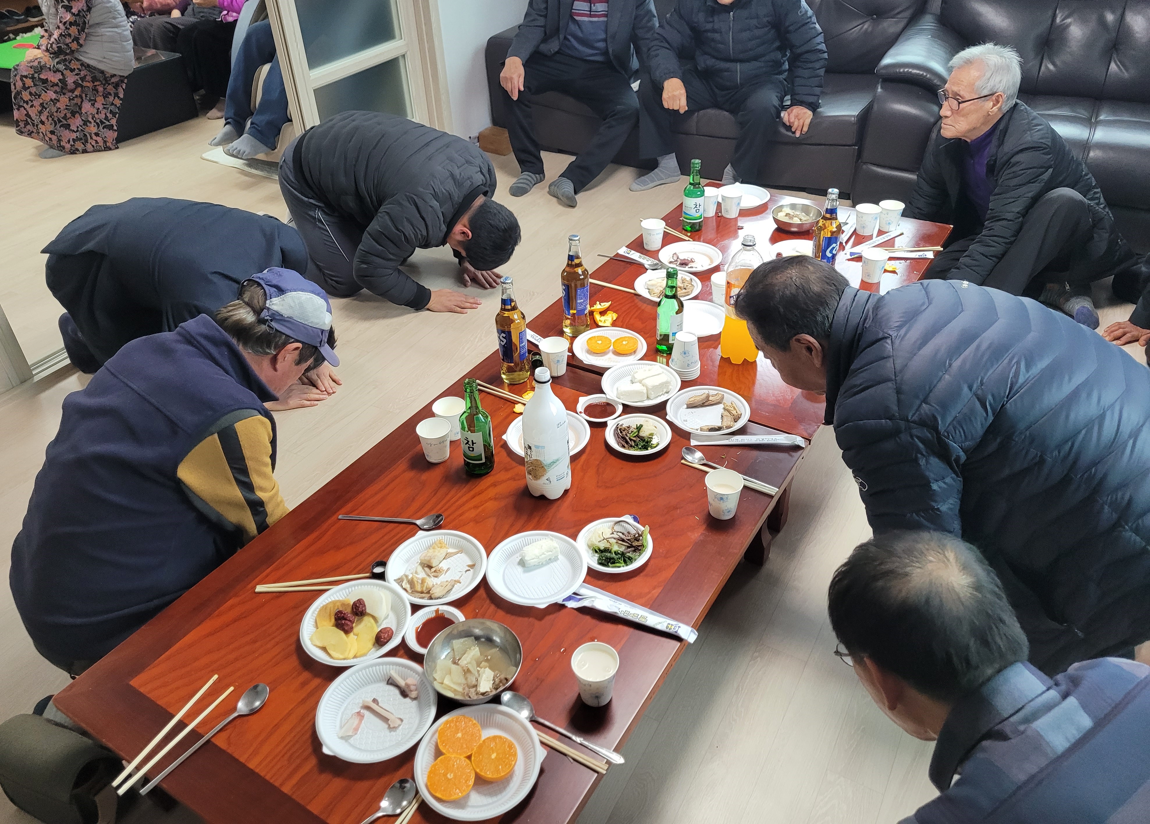 맞절하는 제관과 주민
