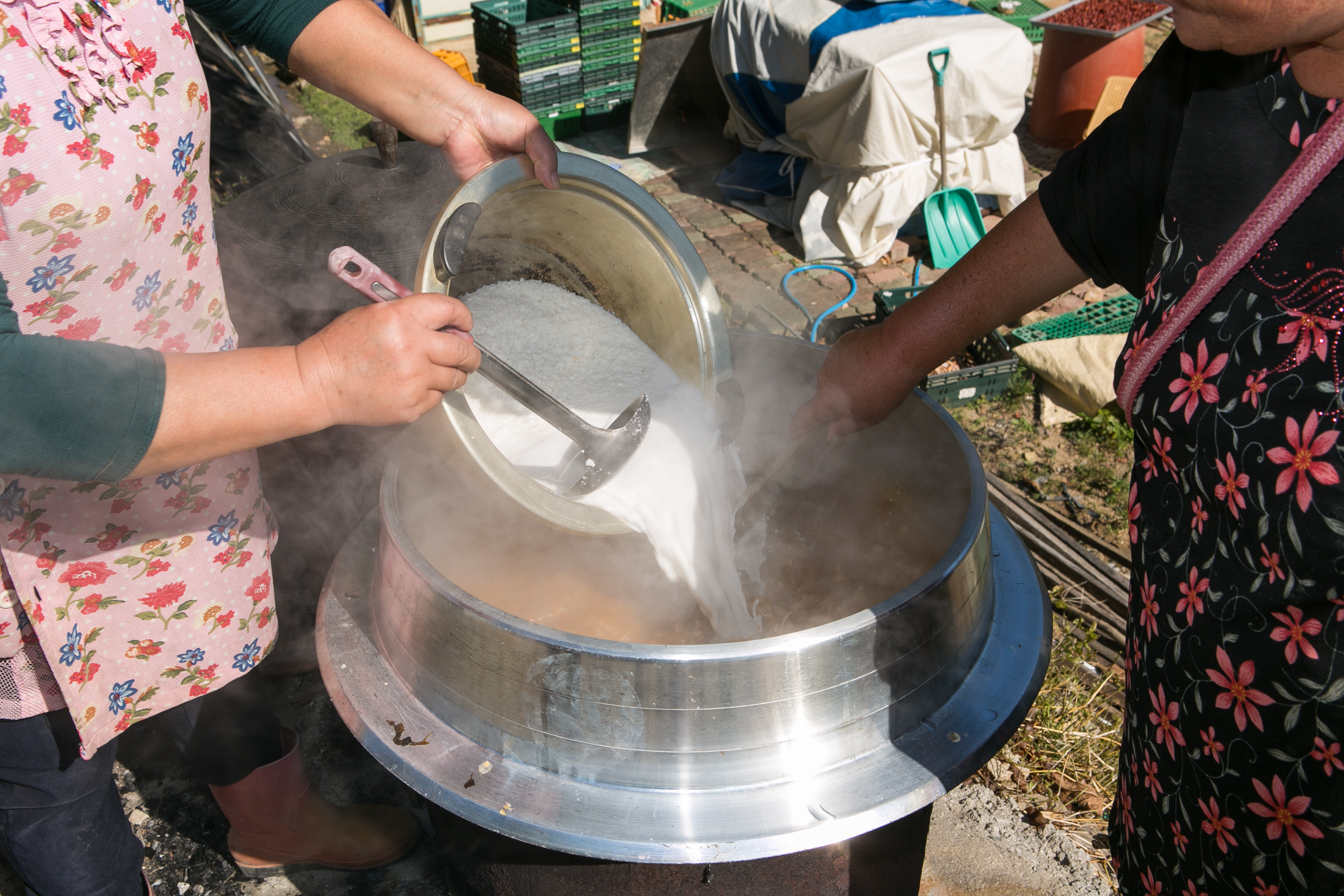 고추죽 조리 과정-찹쌀풀 넣기