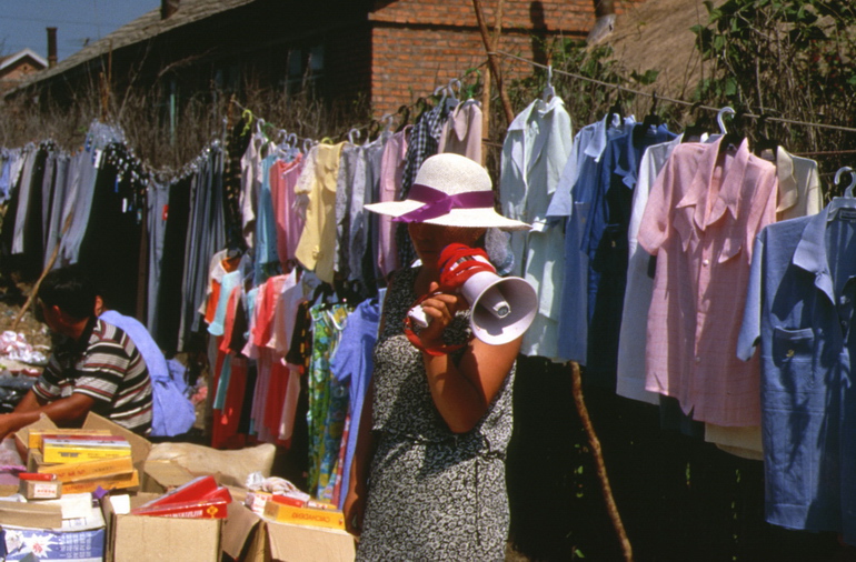 시장에 내건 옷들(와니전자)