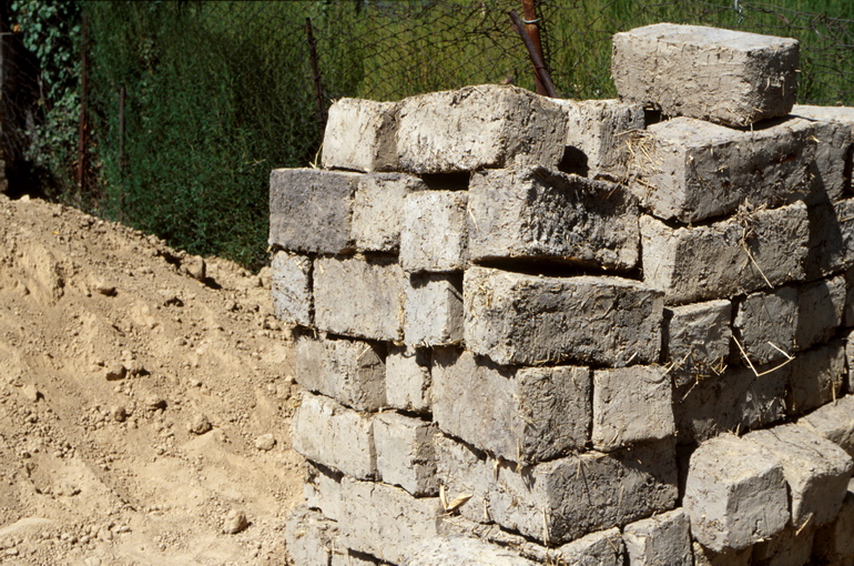 짚이 섞인 우즈벡 전통 흙벽돌