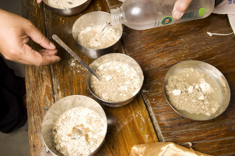 미숫가루를 타는 백균 어르신