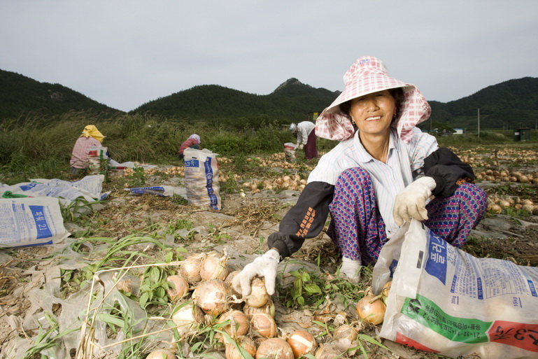 양파 수확하는 임천댁 할머니