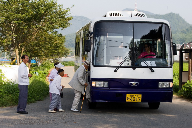 상금마을 주민들 버스 타는 모습