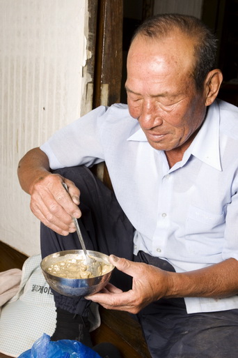 미숫가루를 타는 백균 어르신